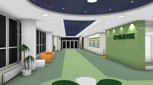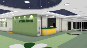 Interiér vstupního a komunikačního prostoru v centrumu pro osoby se zdravotním postižením Čtyřlístek